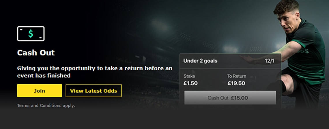 With Cash Out you do not have to wait for your bet to reach its natural conclusion, you have the opportunity to track your selections and Cash Out at a point of your choice.
